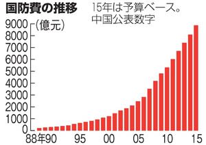 支那の軍事費は毎年増加の一途を辿り、増強された軍備は日本の沖縄や東南アジアに向いています。
