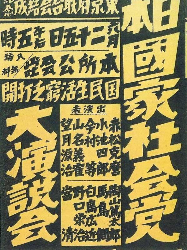 出演者の中にある赤松克麻が党首で作られた政党で、ここには名前はありませんが平野力三なども参加している。その後国議会議員になった人もおり、決して泡沫的な候補者ばかりの政党ではありませんでした。