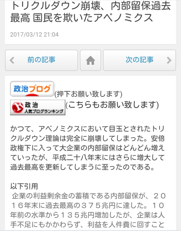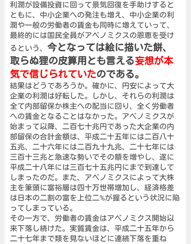 トリクルダウン崩壊、内部留保過去最高 国民を欺いたアベノミクス