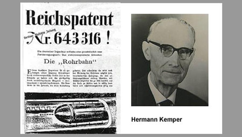このリニアモーターカーの基本的技術の源流は、実は第三帝国時代のドイツで科学者ヘルマン・ケンペルによって研究されました。