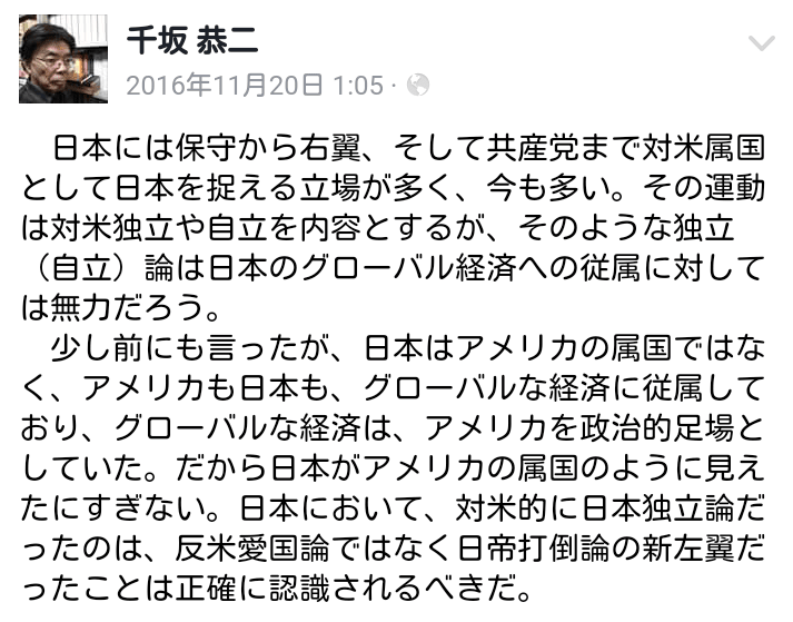 しかし、千坂恭二氏は極右ナショナリズムではグローバル資本主義には勝てないと喝破しています。