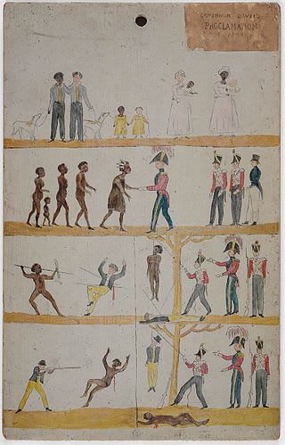 (ブラック・ウォー中に制作された布告ポスター。友好的かつ平等な統治を行うことを宣伝している。)