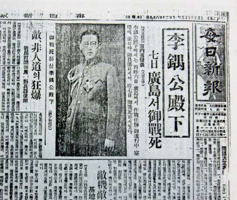 8月6日の広島核攻撃では李王家の陸軍大佐李鍝公殿下が被爆し戦死され、多くの広島市民と共に朝鮮出身者も亡くなった。