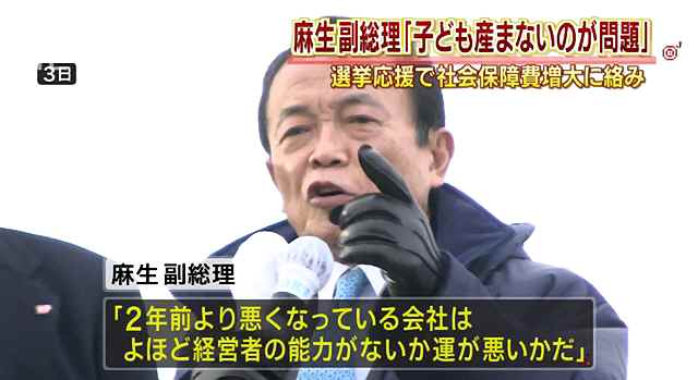 その自分たちの無能を棚に上げて、貧困に苦しむ国民を「運がない」と表現した麻生財務大臣はそもそも政治家としての資質が欠如している。