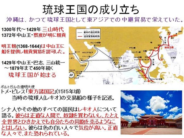 1406年に成立し、1429年に沖縄を統一した琉球王国(中山政権)は三山分立時代から沖縄を治める政権としての正統性と権威を得るために支那の明王朝に朝貢をしていました。