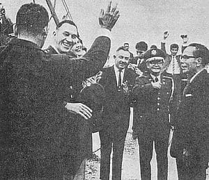 (アメリカ国民政府のアンガー高等弁務官に万歳三唱する琉球人)