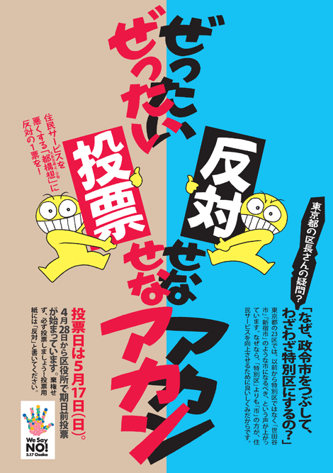 西成区役所前では午前、自民党市議団の柳本顕幹事長が「地域のコミュニティーを守るために反対と書いて」と演説。一方、大阪維新の会代表の橋下徹大阪市長は午後、大阪市中央区内で「今を守るだけでは未来は開けない」と訴えた。