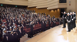 【根室】北方領土の日の7日、早期返還を求める根室管内住民大会が根室市総合文化会館で開かれた。元島民やその子供ら約千人が参加し「ロシアは北方領土を返せ」などと声を張り上げた。(1面参照)