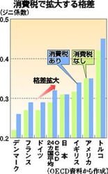「消費税は格差を拡大する」―。経済協力開発機構(OECD)が二十一日に発表した報告書「格差は拡大しているか」のなかで、こんな分析を示しています。